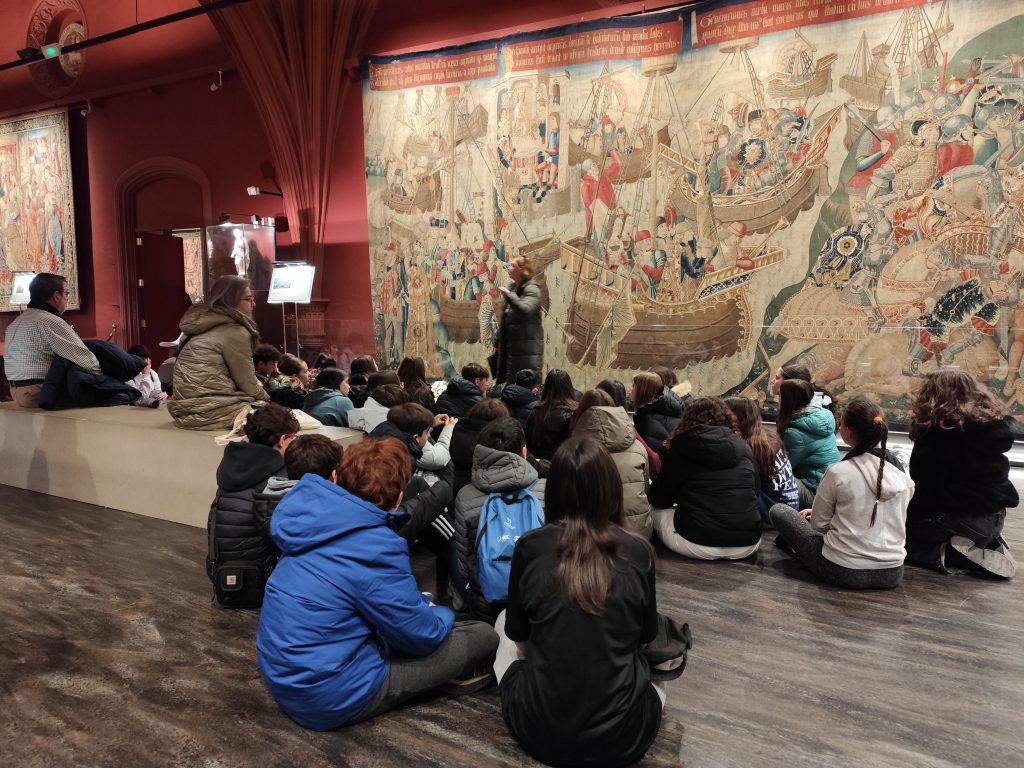 El pasado 4 de febrero nos fuimos de excursión todo 2º de la ESO. Visitamos la catedral del Salvador conocida como «La SEO». Esta visita nos permitió aprender un poco más sobre nuestra ciudad y entender su evolución arquitectónica desde el románico hasta el barroco, pasando por el gótico, mudéjar y renacimiento. Dentro de la Seo visitamos el museo de Tapices que alberga una de las colecciones de tapices flamencos más valiosas del mundo, que data de los siglos XV al XVII. Aprendimos qué eran los tapices y cómo se realizaban. Fue una visita estupenda.
