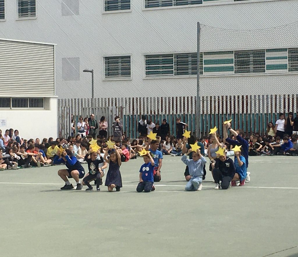 Como broche final,alumnado y docentes de todo el centro, acompañados por las familias y miembros del AMPA , se congregaron en el patio de Primaria para escuchar discursos del alumnado Erasmus+ que resumieron lo que este programa había supuesto para ellos y ellas, seguidos del agradecimiento del AMPA y concluyendo por el director de centro.